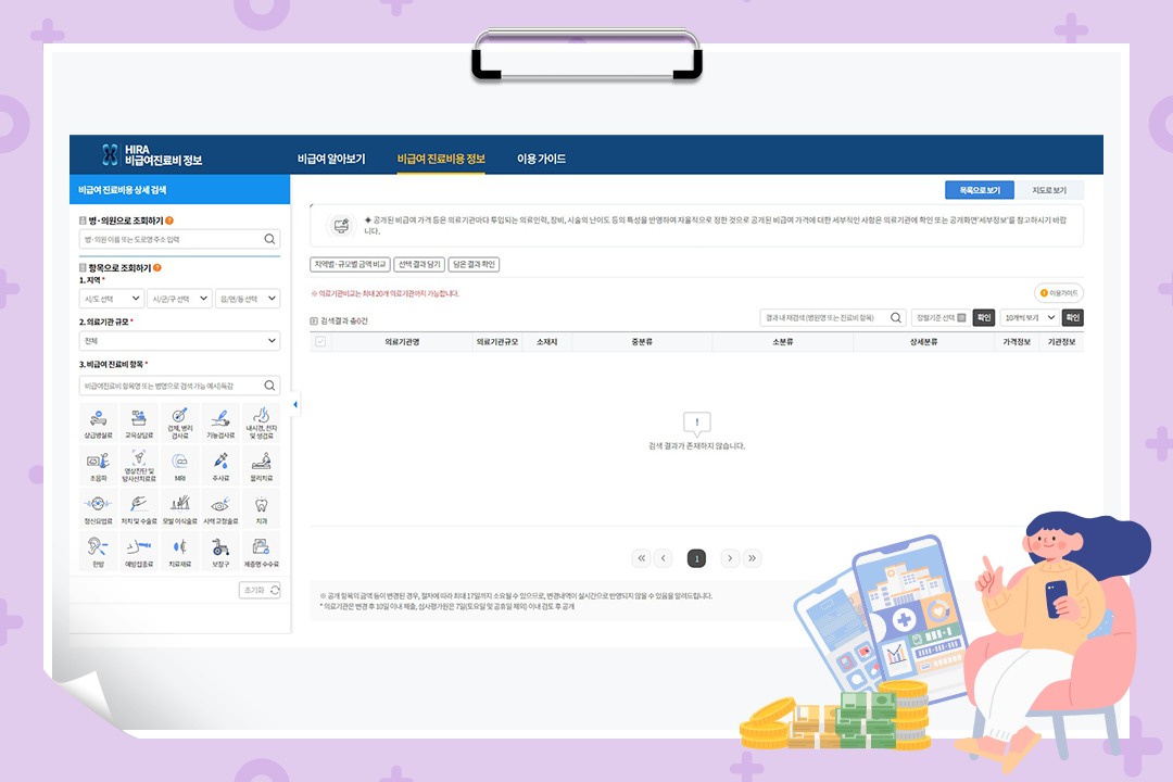 병원에 가기 전 병원 규모와 비급여 진료비 등을 미리 확인하고 비교하면 불필요한 비용을 줄일 수 있습니다.