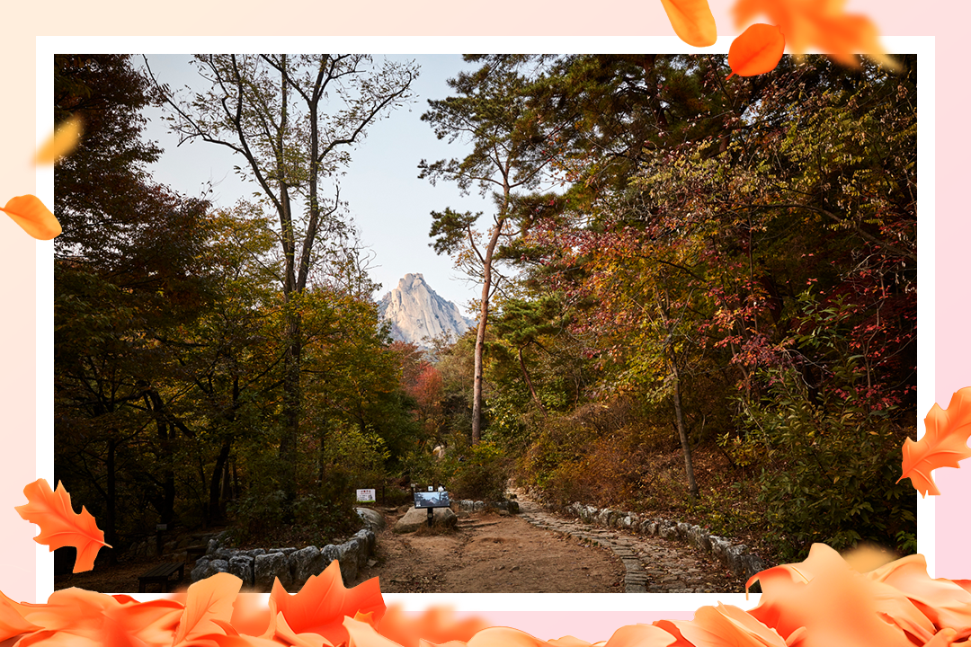 걸을 때마다 바삭바삭한 소리를 내며 바스러지는 낙엽도, 노란 은행잎과 붉은색으로 옷을 갈아입는 나무도 눈에 담으며 지금 순간을 마음에 각인해 보세요.